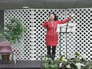 法轮功学员在展桌上展示了法轮功学员集体炼功图片,法轮功学员手工制作的色彩绚丽的莲花和中国乐器等。作为展示中国文化的一部分,法轮功学员表演了女声独唱,先唱了两首英文歌曲,然后用中文演唱了“法轮大法好”等歌曲。精彩的演唱受到人们的欢迎。