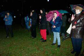 莫斯科大法学员白天集中在学员家里,分成几个地方集中学法、发正念。莫斯科从21日到25日每天都下雨夹雪,晚上温度在零度左右。莫斯科大法弟子每天晚上6点半至8点半集中在中使馆前冒着寒风和雨雪集体发正念。学员讲,在中使馆前集体发正念,念力集中、强大。开了天目的大法弟子看到了在学员集体发正念时在另外的空间进行着一场激烈的正邪大战。一正压百邪,弟子们的正念从其他空间清除了大批妄图增援邪恶之首的邪魔烂鬼。