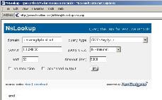 如果那一页上有复杂的选项,您用缺省值试试就一般就可以了。不懂英文的朋友可以找到“domain,host name”的空格填入要找的网址。(参见下图https://www.hexillion.com/utilities/NsLookup.vbs.asp 的例子,点击可看大图。) (原载《网络自由联盟》)