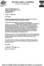 澳洲参议员就选区居民亲属在中国因炼法轮功受迫害一事致信澳外交部长