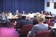 | 10月31日市议会人际关系委员会主席Billy Ocasio主持举行听证会 | 法轮功学员谭永洁在听证会上做证 | 法轮功决议案发起人Toni Preckwinkle在听证会上 |
