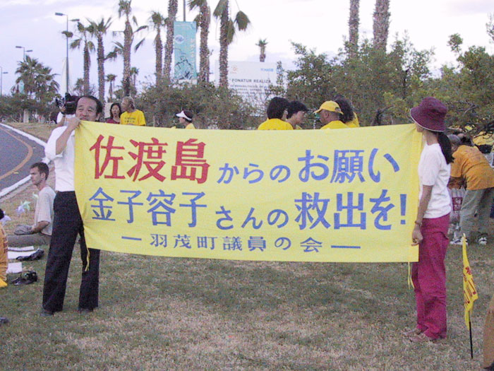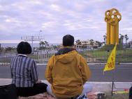 【明慧网2002年11月8日】十月二十二至二十八日,法轮功学员在江到访墨西哥洛斯卡沃斯(Los Cabos)参加APEC会议期间举行抗议活动。
