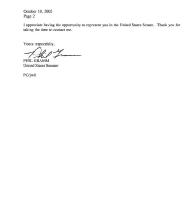 我珍视在美国参议院中作为你的代表的机会。谢谢你拨冗与我联系。