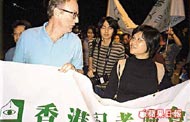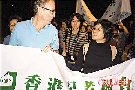 参加星期日游行的报纸出版富商吉米.赖(Jimmy Lai)说这一法律象“一个无形的紧箍圈” 。