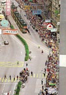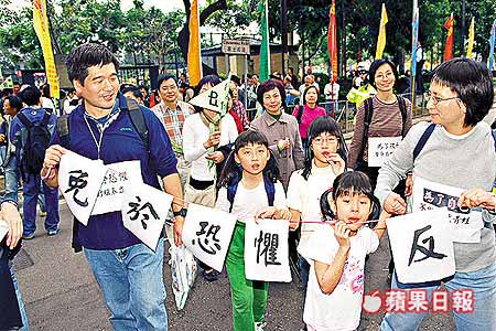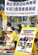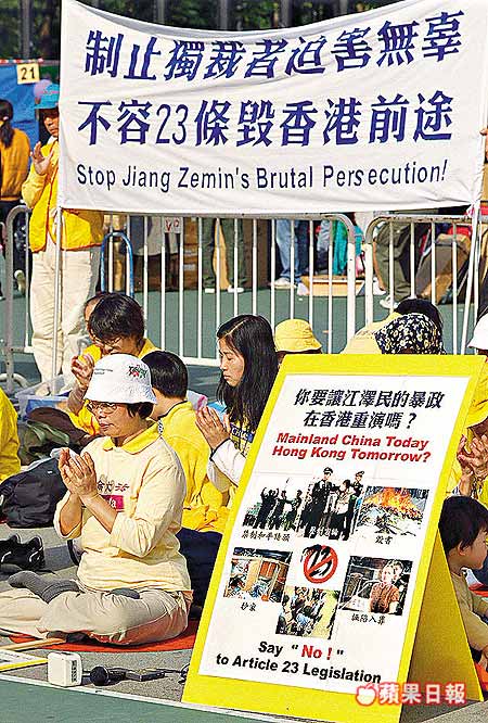 多达100个民间和宗教团体加入游行,包括在中国被[江氏集团]禁止的法轮功精神运动。虽然在香港是合法的,但该团体担心当新法通过后会受到镇压,因为新法规定与大陆被禁团体有联系的香港机构非法。