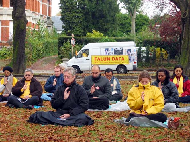 【明慧网2002年12月17日】2002年10月26日欧洲各国弟子早晨9:00来到中国驻比利时大使馆前发正念。与此同时学员开着一辆挂有“停止