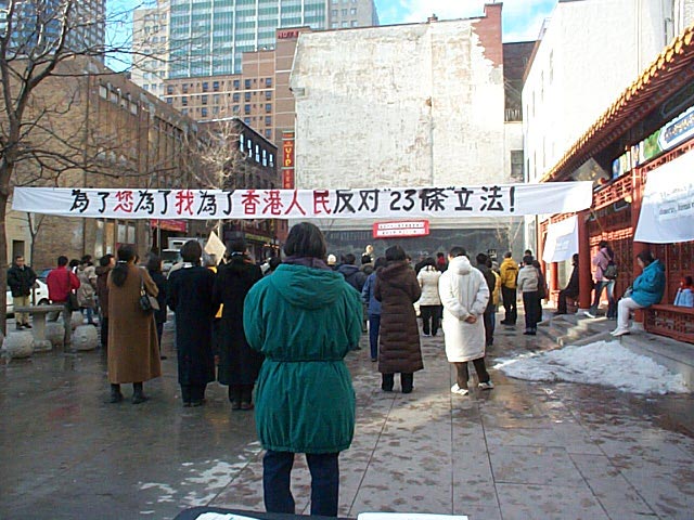 【明慧网2002年12月17日】12月15日下午1时,来自蒙特利尔的各界关心香港前途命运的百余名华人,在唐人街举行了声势浩大的“抵制香港23条立法”的大型集会和游行。参加集会的包括国际特赦组织,宗教界、文化界、法轮功修炼团体以及当地侨界民众。
