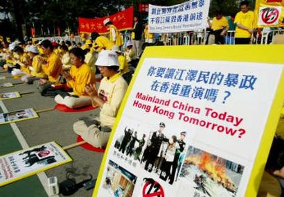 路透社图片报导:法轮功学员静坐抗议反颠覆立法