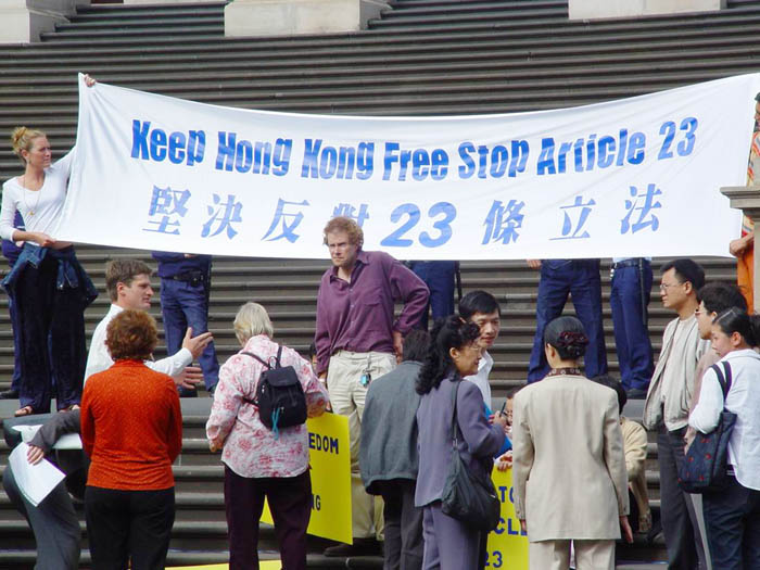 商业界代表陈丽丽女士诉说到:“我是一个商人,去年我到香港、中国旅游,曾无辜地被中国海关整整关押了一天一夜。最近,我又准备去香港购置设备。如果23条立法一旦成立的话,那么我在中国大陆遭受的那噩梦般的经历就会在香港重演,为此我感到恐惧,所以我强烈地反对香港23条立法。我也希望每一位海外华人,在香港人民的人身自由面临巨大威胁之际能站出来,为维护香港的民主和自由说句公道话。”