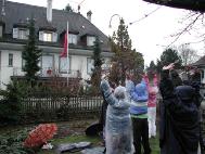 瑞士学员中使馆前发正念、声援全球反对恶法23条活动(图)