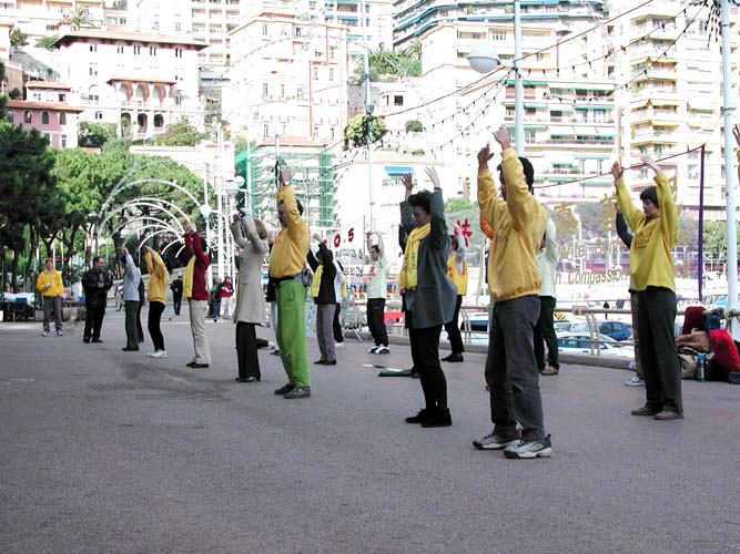 【明慧网2002年12月3日】原中共中央政治局常委,中央610办公室头目李岚清,于2002年12月1日至12月4日到欧洲摩纳哥公国进行访问。欧洲部份大法弟子闻讯后,星夜兼程赶到摩纳哥和平请愿,要求撤消610犯罪机构,停止镇压法轮功。