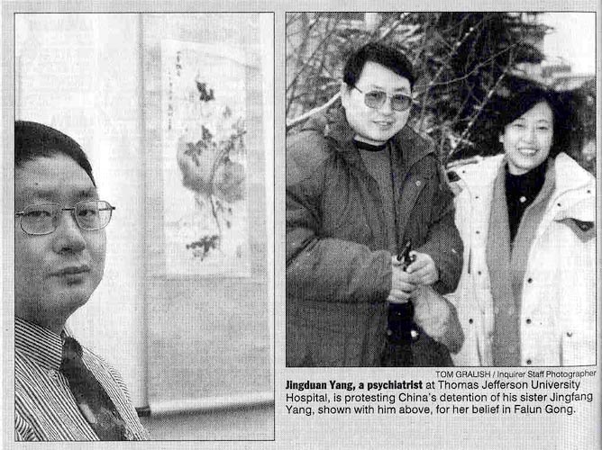 报导中说,杨景端的母亲想让他闭口,不要再说了。她在从中国打来的电话中对他这样说。因为她认为,她这个在托马斯杰佛逊大学医院作精神病学医生的小儿子,如果不闭口,只能给他的大姐带来更多的麻烦。