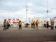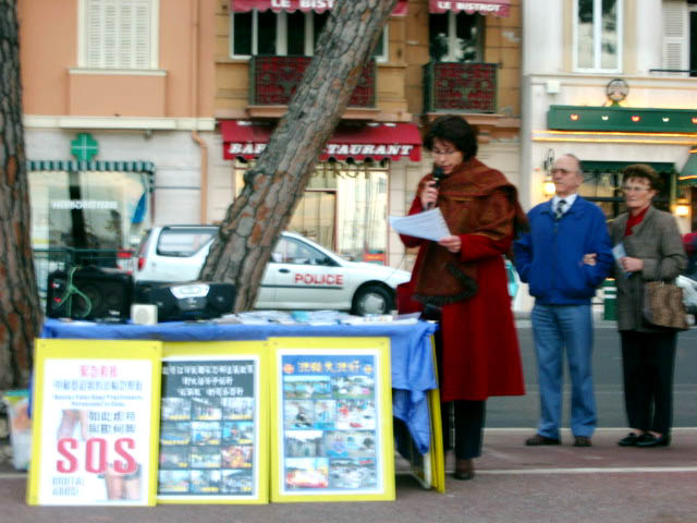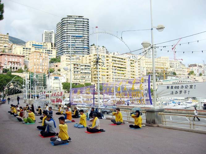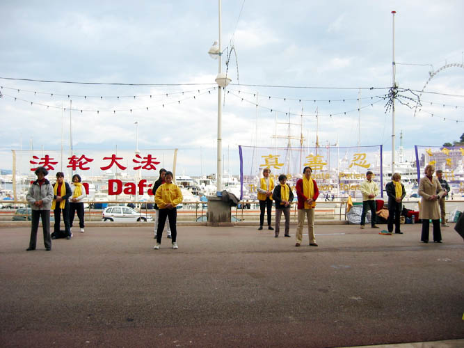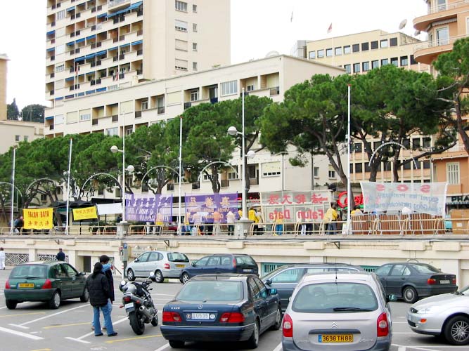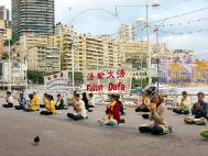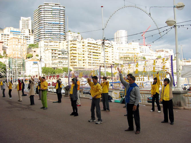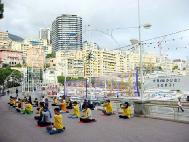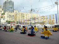 11月30日下午,经摩纳哥有关部门批准,来自瑞士、意大利、德国和法国的法轮功学员在蒙特卡洛市中心港口进行炼功、洪法、发正念及和平抗议活动。过往行人纷纷驻足了解情况,有的被祥和优美的功法所吸引,表示要学炼功法。负责维持秩序的警官在活动开始后对学员说,你们的情况我的上级都非常了解,你们是和平的,你们放心地搞你们的活动吧。