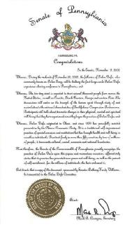 宾州参议院在这充满喜悦的重要时刻荣幸地嘉奖法轮大法;我们肯定地宣布,这一功法促进了成千上万拥戴他的人的内心祥和、给予了他们幸福康乐,并提倡追求自我完善。