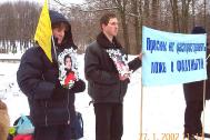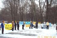 学员们不断地发正念清理邪恶。大使馆门前这条街行人不多,但每一个过往的人都停了下来,认真地看展板上的图片资料,接过学员递来的真相材料,关心地向学员了解情况。尽管中国驻莫斯科大使馆和驻圣彼得堡领事馆一直拒绝接受我们呼吁停止镇压的公开信,但是我们不会停止我们的和平抗议活动。我们希望,大法弟子对那些参与迫害法轮功的人们的良心的和平和理性的呼吁不会没有结果,真诚和大忍之心终会使他们明白自己所施恶行的严重后果和对此应承担的责任。