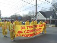 游行后,地方电视台播放了法轮大法弟子队伍的游行场面。
