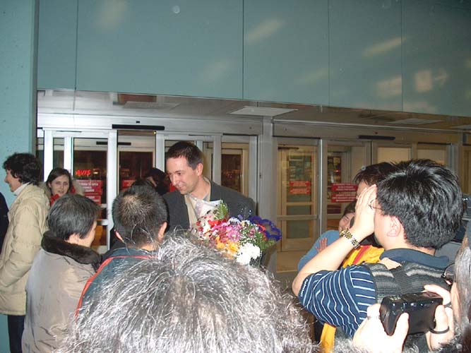 当多伦多大法弟子Adrian和David(大伟)走出机场大厅时,两天前刚刚从北京天安门广场证实大法归来的杰森手持鲜花迎上前去与他们紧紧拥抱,掌声泪水伴随着大法弟子的歌声在机场大厅中回荡。