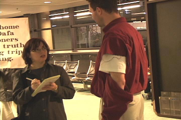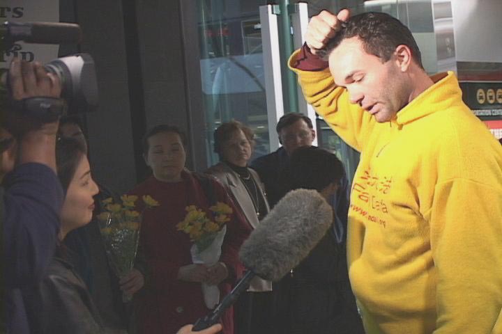 | 西雅图三位西人大法弟子中国和平请愿后今晚返回。他们是:大卫、珍妮和爱莎 | 在法轮大法好歌声中欢迎西人同修归来 | 同修喜相逢 |