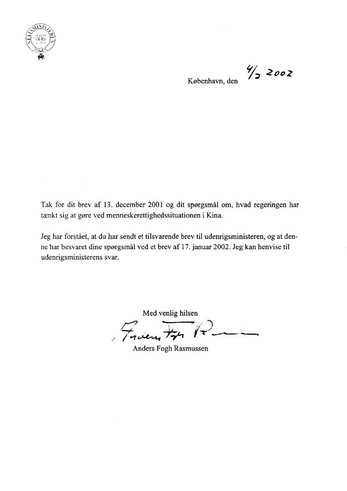 安德斯.福格.拉斯姆森(签字)2002年2月4日