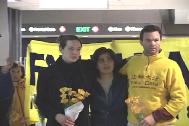西雅图三位西人大法弟子中国和平请愿后今晚返回。他们是:大卫、珍妮和爱莎在法轮大法好歌声中欢迎西人同修归来同修喜相逢