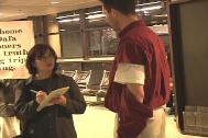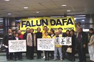 大卫、珍妮和爱莎先后经由温哥华,于6点20分前后抵达西雅图国际机场。早已经等候那里的家属和大法同修们,在一片祥和慈悲的普度音乐声中,手持鲜花和大法横幅,欢迎为了信仰自由和救度世人不惜一切、到法轮大法的故乡──中国去证实大法的西人大法弟子。