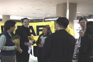 【明慧网二零零二年二月十七日】15日傍晚时分,前往中国北京天安门为受迫害的法轮功和平请愿的三位西雅图西人大法弟子,顺利返回;在西雅图国际机场受到家属和众多大法同修的热烈欢迎,并接受了各大媒体长达一个多小时的访问。