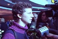 安瑞.海利对记者们说,“我14日清早出旅馆门时,就发现有辆黑色轿车,四/五名便衣警察紧紧跟踪,两个多小时后,在北京的大街上,被他们强行带走到天安门派出所……对他们无理违法的拘留我们拒不配合,把我们关押20多个小时后,在众目睽睽之下,数名警察把我强行拖上飞机。”