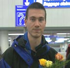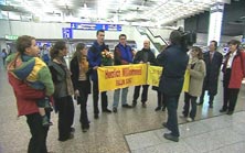 | 图中被警察围攻的白人弟子即为安德列.胡博 | 安德列在法兰克福机场受到同修们的热烈欢迎 | 在北京饱受四日牢狱之苦的安德列 |