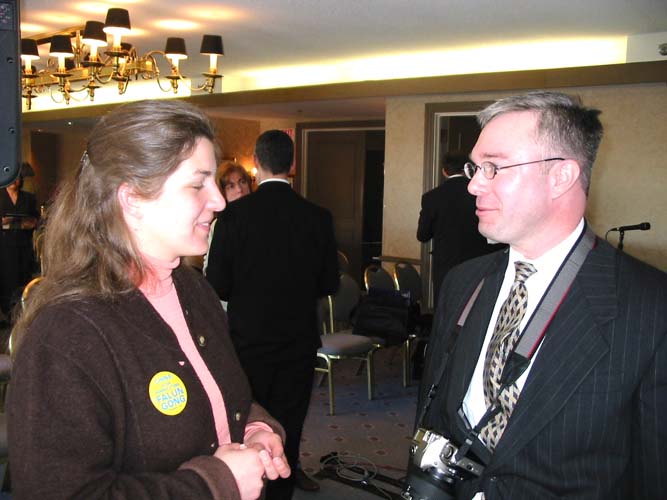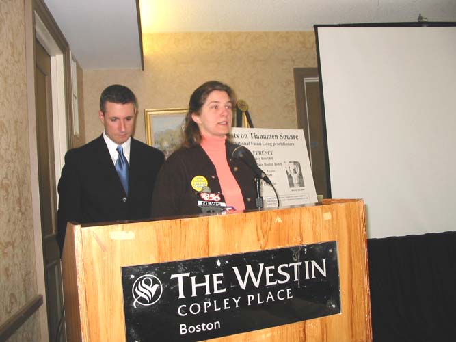 【明慧网2002年2月20日】2月18日上午10时30分,波士顿地区的大法弟子在市中心维斯丁饭店为从北京和平请愿归来的两位西人大法弟子──瑞欧顿.盖洛乔(Riordon Galluccio)和玛瑞亚.邵子曼(Maria Salzman)举行了记者招待会。当地最有影响的几家大报:波士顿环球报(Boston Globe)、波士顿都市报(Boston Metro)、波士顿号角报(Boston Herald)等报纸记者,和WB56 、ABC电视台的记者均到场采访。