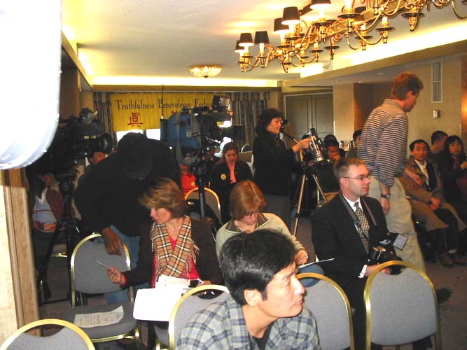 瑞欧顿和玛瑞亚对记者们讲述了去中国的目的是为了告诉那里的人民事实真相──法轮大法好!法轮大法在世界各地受到好评;揭穿政府中少数人为了个人野心所制造的无耻谎言来欺骗百姓的行径,同时向中国政府呼吁停止对法轮功的残酷迫害。两位学员并指出:迫害法轮大法不只是中国问题,而是全人类生存的最基本权力问题;我们之所以在天安门被打、被抓,就是因为说了一句话:法轮大法好!那些贪官污吏害怕真、善、忍,因为这三个字与他们的所作所为正好相反。最后为大家播放了揭露“自焚”真相的录像片。使与会者有机会亲眼看到这场轰动世界的“自焚”丑剧的真实面貌。