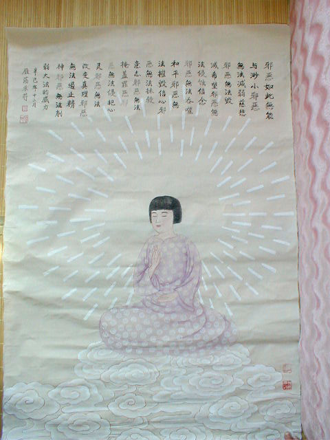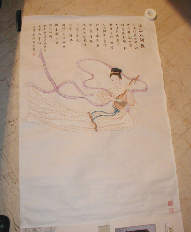 | 章翠英画作“飞天独奏琵琶” | 章翠英画作“发正念” |