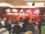 | 华府学员举办的新春联欢会 | 明慧学校校长于建梅会上发言 |