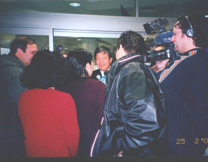 | 国际特赦代表欢迎林慎立 | 林慎立与妻子李进宇 |