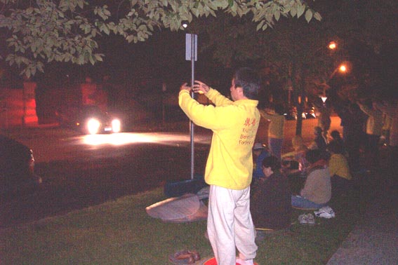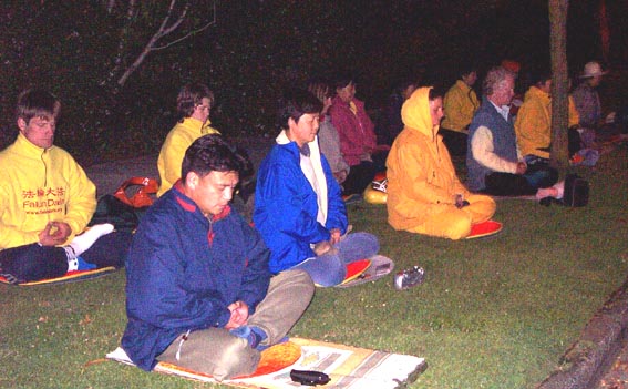 图片:立春 墨尔本学员在中领馆前与国内同修同发正念