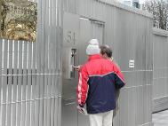 由于以往每天都有学员在使馆前请愿,所以警察对我们已很熟悉。我们刚把昨天赶制的呼吁停止枪击和判处法轮功学员死刑的德文横幅固定好,两个警察就笑容可掬地来到我们这里。我们告诉了他们关于长春电视台和江泽民的命令的最新消息,他们一方面为大陆学员的壮举感到高兴,另一方面又对江泽民的卑劣手段频频叹气摇头,并说如果在请愿活动中遇到麻烦随时可以叫他们,他们就在对面的车里。