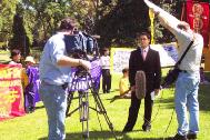学员们不顾旅途辛劳,一下飞机就立即奔赴墨尔本市内最大的炼功点——弗拉格斯塔夫(Flagstaff Gardens)公园举行了新闻发布会。ABC电台、7频道、9频道、10频道和大纪元时报等多家新闻单位出席了发布会。