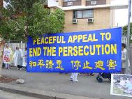 “我们和多达80个警察接触,很吃惊的是,他们对法轮功真相一无所知,我们告诉他们大法好,世界上五十多个国家都有法轮功学员炼功,澳洲政府也支持法轮功。在把我们押送旅馆之前,他们粗暴地用武力将我们分开,我们被逼被分开单独审问,我们尽量告诉他们法轮大法好,但他们只相信政府的欺骗宣传,他们只想问出我们在中国有没有联络人,认不认识中国的法轮功学员,他们想迫害更多的大法学员。”