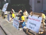 两女大学生绝食 休士顿中领馆前呼吁制止江泽民的屠杀令(图)