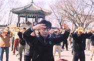 下午2点20分,学员们前往中国使馆区明洞,在人潮如流的韩光银行前摆出了几十条横幅,散发传单,发正念,到下午4时30分,历时4小时的正法活动结束。
