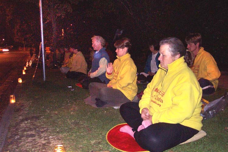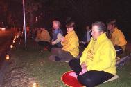 夜幕降临,近百名绝食学员和支持学员在通向国会山的甬道上点燃了一根根蜡烛,烛光中,清晰地照映着大法弟子坚定的面庞。