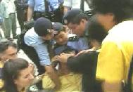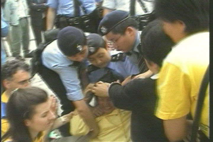 香港警方在3月14日发出第四号新闻公布中,宣称昨天在中联办警方强力搬走静坐的法轮功学员的过程中,“某些请愿人士反抗,令五名警察受轻伤,受伤警员有胸口被踢,亦有一名警员手臂被咬伤”。在昨日深夜仍被警方无理拘禁的法轮功学员严正澄清:法轮功学员一贯按照和平、非暴力的“真善忍”精神处事待人,绝无法轮功学员伤害警员之事,而有关警员手臂被(学员)咬伤云云,纯属别有用心的污蔑之词。相反,在警察动粗的过程中,有9名学员受伤。但学员要到医院验伤,却受到有人故意拖延与掩盖真相。对于上述有关方面知法犯法的行为,法轮功学员保留依法追究的权利。