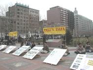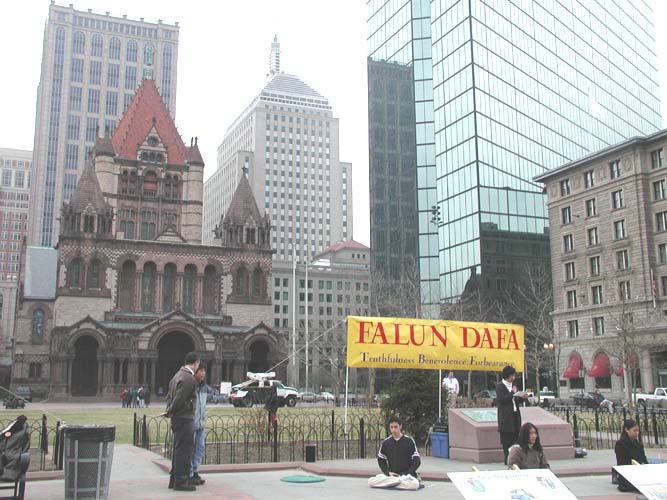 波士顿法轮功学员在市中心举行新闻发布会(图)
