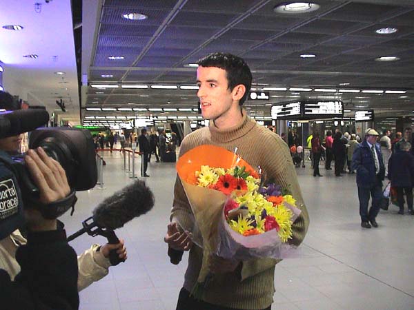 【明慧网二零零二年三月十九日】2002年3月16日,爱尔兰大法弟子哲拉德.奥康纳(Gerald O'Connor)抵达都柏林。他在天安门广场打开一面法轮大法横幅后被捕,关押过夜,然后驱逐出境。