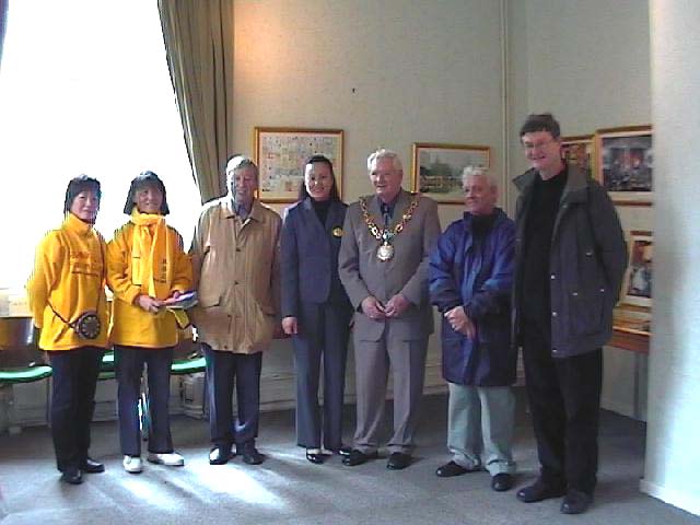 【明慧网2002年3月19日】3月17日上午,法轮大法“正法之路图片展”在英国唐沃斯市市政厅举行。唐沃斯市市长、议长及几名随行议员来到展厅并饶有兴致地观看了展览。一名曾回国上访并遭非法关押的当地学员详细地向市政厅官员介绍了大法在世界的弘传及中国政府对大法的残酷迫害。70多岁的英国学员泰伦斯也介绍了大法修炼给他身心带来的巨大变化及他因修炼法轮功而被中国大使馆拒绝签证的事实。此前5名英国西人法轮功学员赴北京上访被殴打、非法关押及暴力遣返的消息在英国各大媒体已传播的沸沸扬扬,中国江泽民政府残酷迫害法轮功的行径已遭到英国朝野上下及社会民众的共同谴责。
