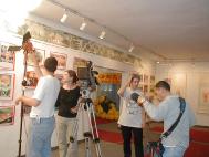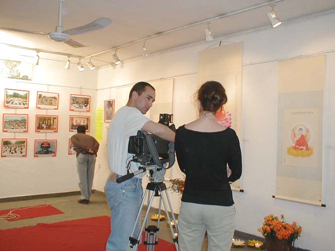 今天以色列有线电视台又专程来报道“正法之路”图片展的新闻,使更多的以色列人民再一次了解法轮功的真相。记者一张一张地不停地摄下“正法之路”的图片,从这个房间到另一个房间,然后专门采访了学员。学员把中国大陆受迫害的法轮功学员的悲惨遭遇一一述说,随后记者摄下一张张受迫害的大法弟子的图片证据。然后把我在中国受迫害的八个月告诉记者。图片展里放了我的简介和数幅国画,人证、物证记者一一摄下。