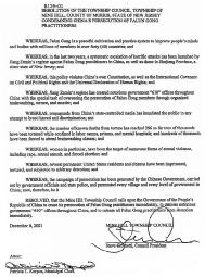新泽西州矿山市通过谴责对法轮功学员迫害的决议