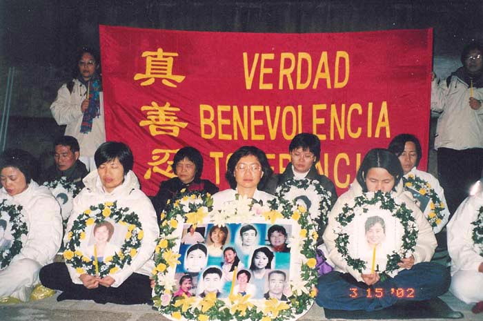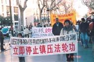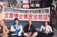 | 制止虐杀 | 悼念死难同修 | 小弟子参加游行 |