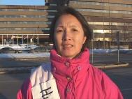 另一名学员罗丝已经绝食4天,头两天没有喝水,她说:“我们希望加拿大政府出面讲话,并鼓励其他国家参与对江泽民政治流氓集团的谴责。加拿大人民是善良、正义的。在我们绝食的这两天里,许多好心的人,走过来对我们表示关切。刚才,还有过路人对我们说,‘我支持你们!我为你们骄傲,希望你们坚持下去。’”