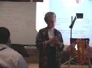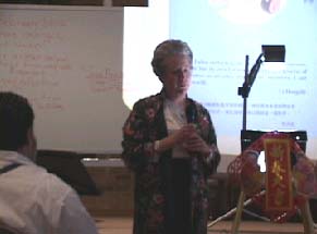 在正式介绍的前一个周日,学员们特地与她会面,商讨课程的安排,并给她带去了大法资料、大法书籍、录像带等,大法弟子的谦逊、平和给她留下了很好的印象,通过交谈她得到了一些关于法轮功问题的答案,表示非常高兴我们把这么美好的东西带给她。当谈到中国对法轮功的镇压,她发自内心地说:“911的灾难很不幸,但那究竟很短,大多数的美国人的生活并没有受那么大的影响,但那些人(大法弟子)却是每天每刻都面对着恐怖,真是很难!”