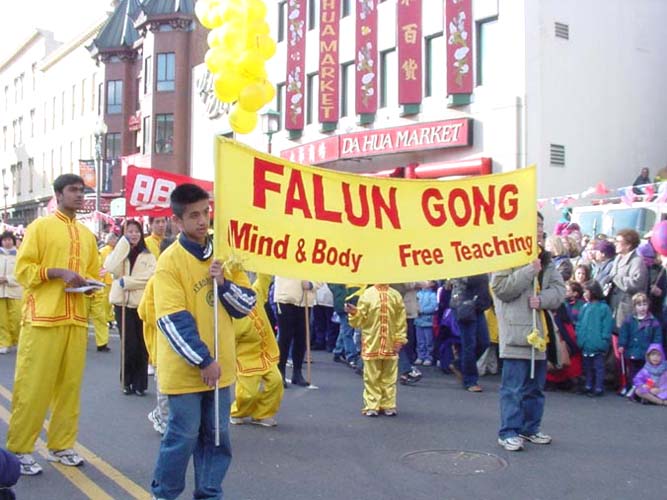 【明慧网2002年3月4日】由华府中华会馆举办的一年一度庆祝春节及游行于星期日在中国城热烈展开。华府市长及各界政要都应邀参加。主办单位预先通知我们法轮功及明慧学校的队伍是主要成员之一,并一再感谢大法弟子在各方面给予他们的义工支持。